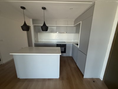 馃敻 Cocina equipada con anafe, horno y campana, integrada al living comedor, dividido por una isla.