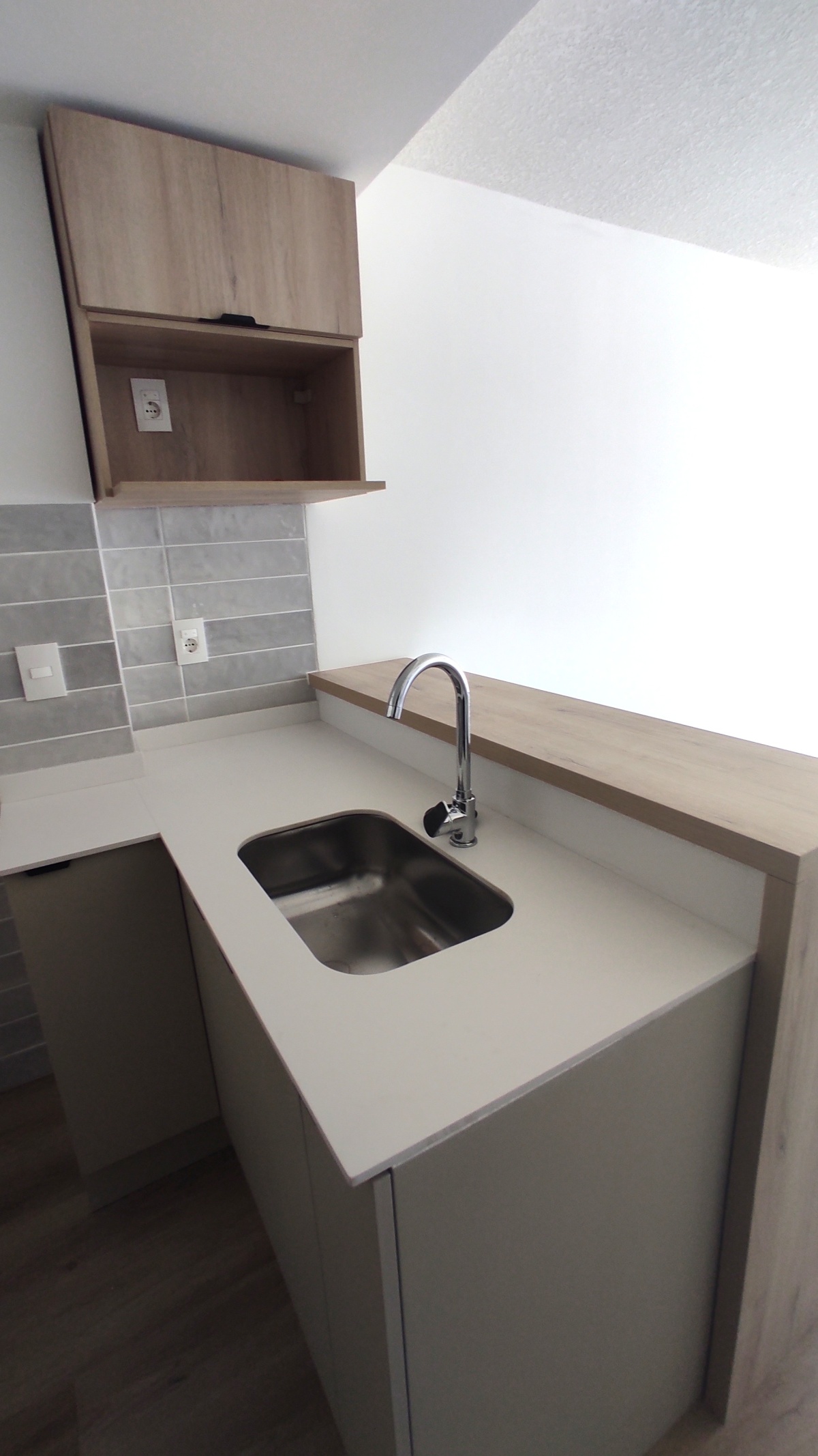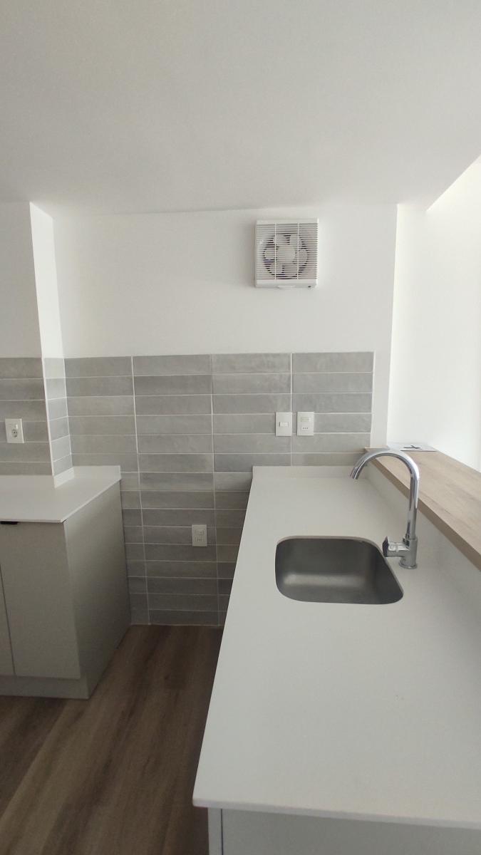 Orientado al frente en 5to piso. Living comedor con cocina integrada, con placares sobre y bajo mesada. Un dormitorio con acceso a terraza. Placard de guardado. Amplio baño y con calefón ya instalado.