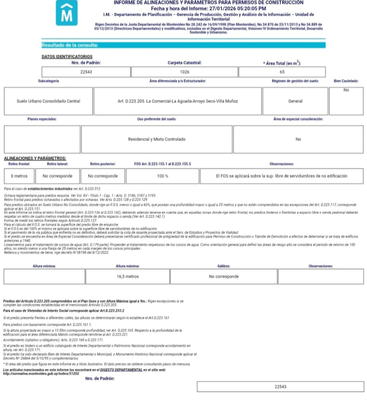 Altura máxima 16.5 metros